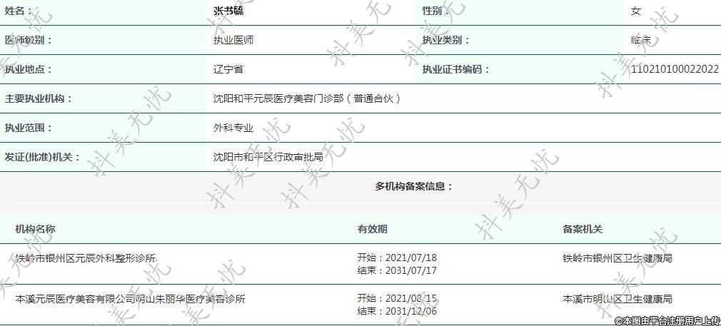 主要執(zhí)業(yè)機(jī)構(gòu):沈陽(yáng)和平元辰醫(yī)療美容門診部(普通合伙)