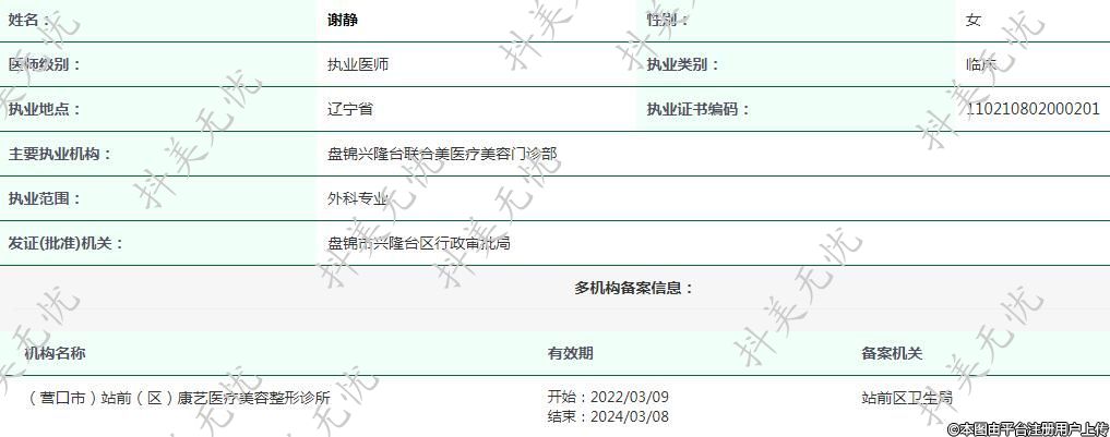 主要執(zhí)業(yè)機構:盤錦興隆臺聯(lián)合美醫(yī)療美容門診部