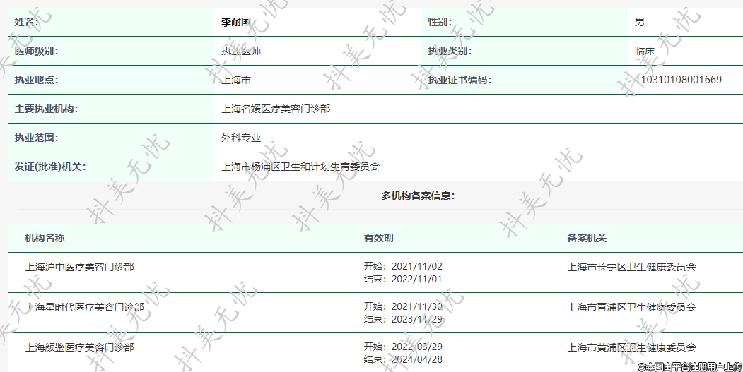 主要執(zhí)業(yè)機構:上海名媛醫(yī)療美容門診部