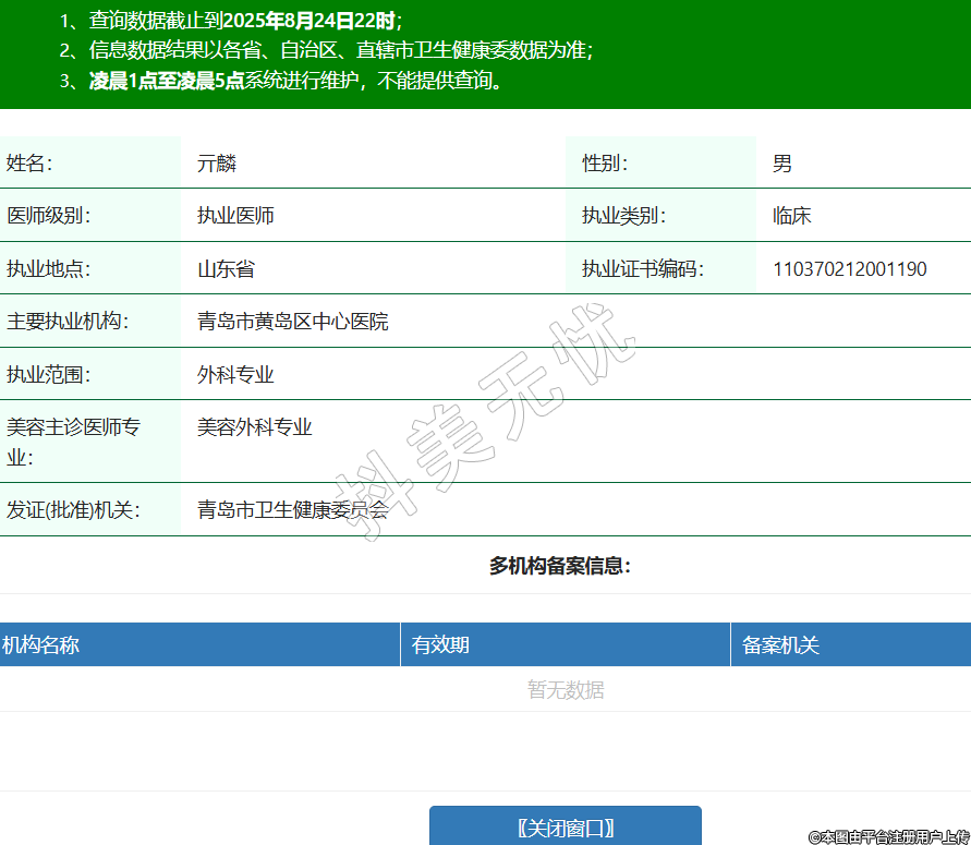 姓名:亓麟性別:男醫(yī)師級別:執(zhí)業(yè)醫(yī)師執(zhí)業(yè)類別:臨床執(zhí)業(yè)地點:山東省執(zhí)業(yè)證書編碼:110370212001190主要執(zhí)業(yè)機構(gòu):青島市黃島區(qū)中心醫(yī)院執(zhí)業(yè)范圍:外科專業(yè)美容主診醫(yī)師專業(yè):美容外科專業(yè)發(fā)證(批準)機關(guān):青島市衛(wèi)生健康委員會 -