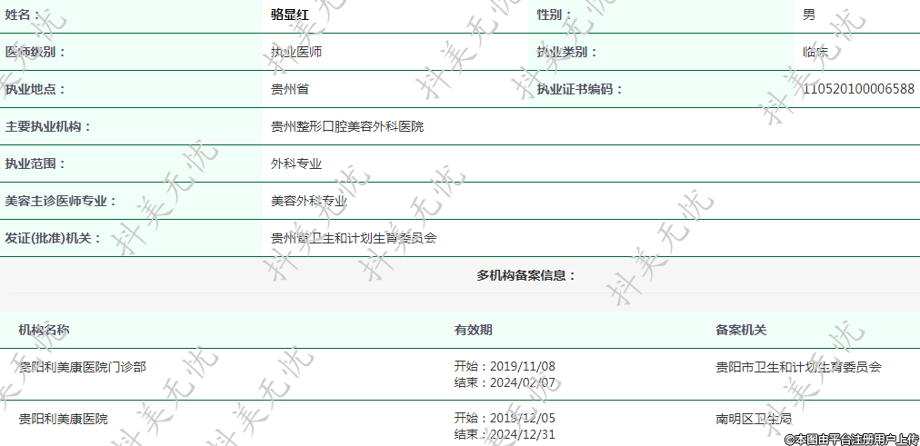 主要執(zhí)業(yè)機構:貴州整形口腔美容外科醫(yī)院