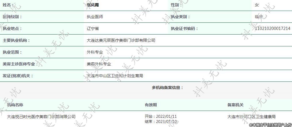 主要執(zhí)業(yè)機(jī)構(gòu):大連達(dá)美元辰醫(yī)療美容門診部有限公司