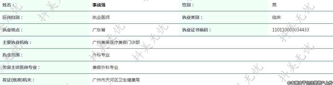 主要執(zhí)業(yè)機(jī)構(gòu):廣州美萊醫(yī)療美容門(mén)診部