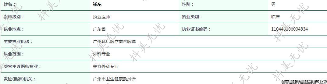 主要執(zhí)業(yè)機(jī)構(gòu):廣州韓后醫(yī)療美容醫(yī)院