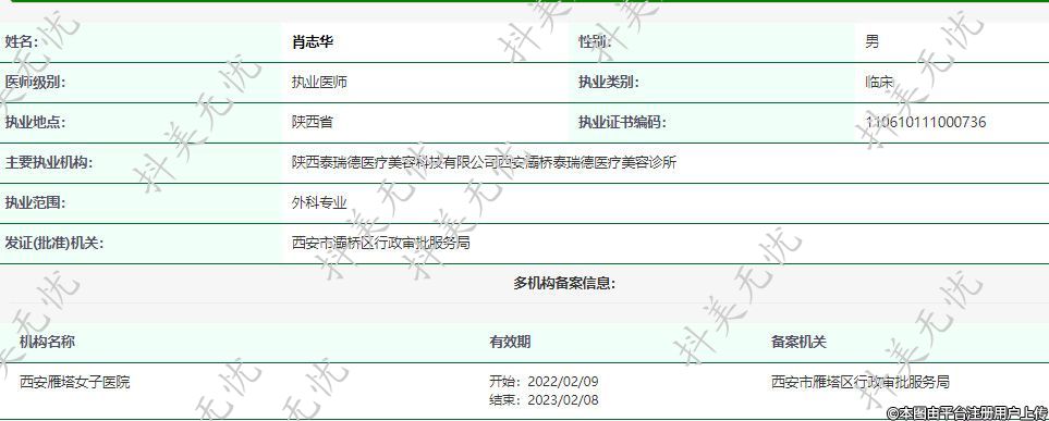 主要執(zhí)業(yè)機(jī)構(gòu):陜西泰瑞德醫(yī)療美容科技有限公司西安灞橋泰瑞德醫(yī)療美容診所
