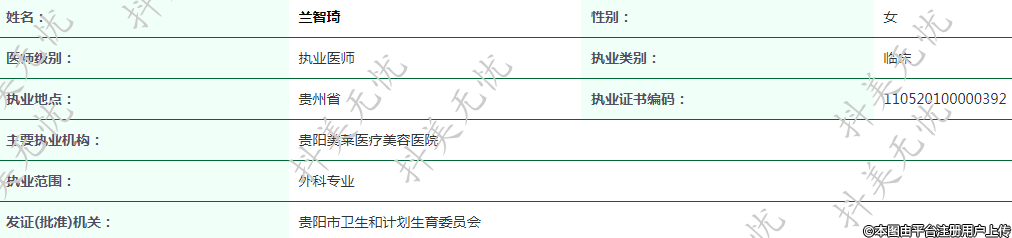 現(xiàn)任貴陽美萊執(zhí)業(yè)醫(yī)師