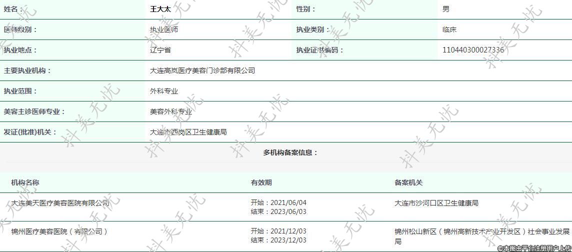 主要執(zhí)業(yè)機(jī)構(gòu):大連高嵐醫(yī)療美容門診部有限公司