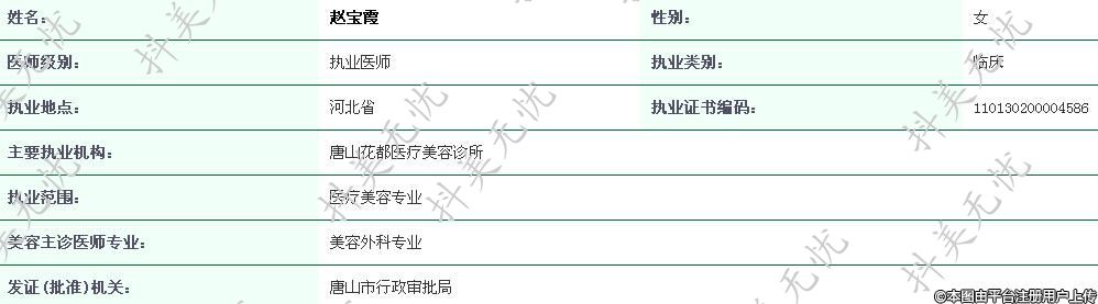 主要執(zhí)業(yè)機(jī)構(gòu):唐山花都醫(yī)療美容診所