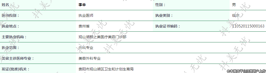 發(fā)證(批準)機關:貴陽市觀山湖區(qū)衛(wèi)生和計劃生育局