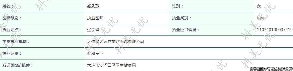 主要執(zhí)業(yè)機(jī)構(gòu):大連美天醫(yī)療美容醫(yī)院有限公司