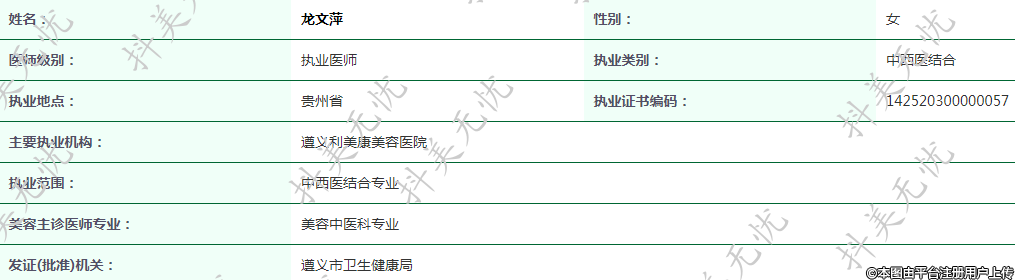 主要執(zhí)業(yè)機構:遵義利美康美容醫(yī)院