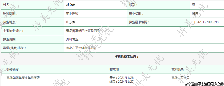 主要執(zhí)業(yè)機(jī)構(gòu):青島御嘉妍醫(yī)療美容醫(yī)院
