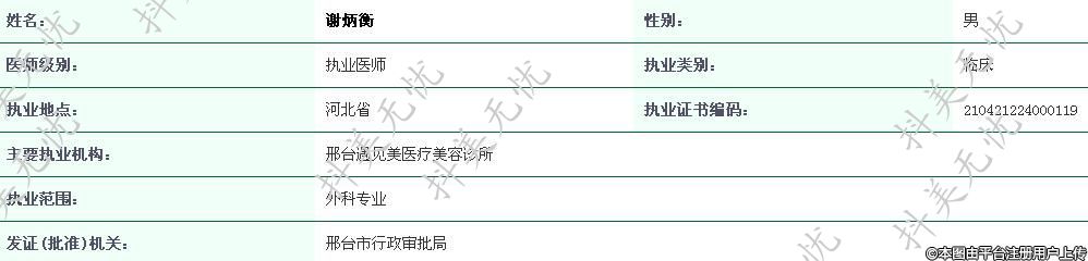 主要執(zhí)業(yè)機(jī)構(gòu):邢臺遇見美醫(yī)療美容診所