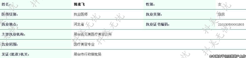 主要執(zhí)業(yè)機(jī)構(gòu):邢臺(tái)遇見美醫(yī)療美容診所