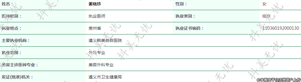 主要執(zhí)業(yè)機構(gòu):遵義韓美美容醫(yī)院