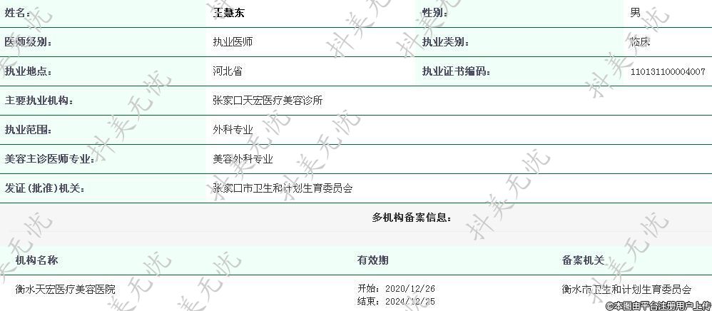 主要執(zhí)業(yè)機構(gòu):張家口天宏醫(yī)療美容診所