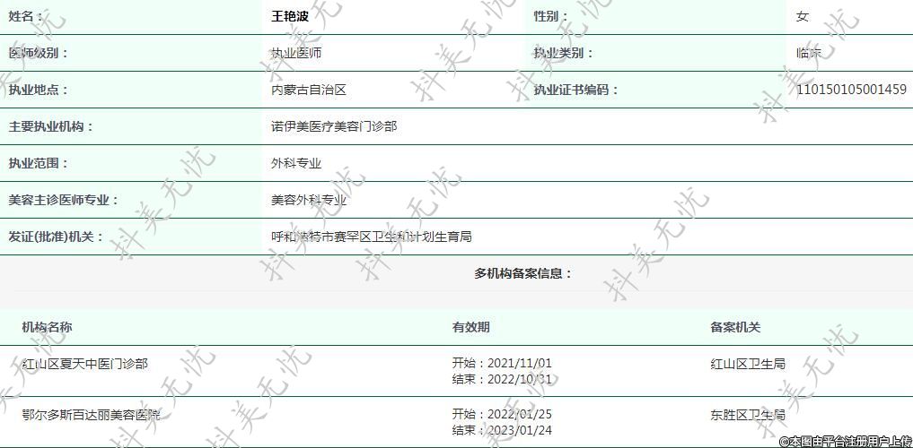 主要執(zhí)業(yè)機(jī)構(gòu):諾伊美醫(yī)療美容門診部
