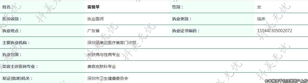 主要執(zhí)業(yè)機構(gòu):深圳蒳美邇醫(yī)療美容門診部