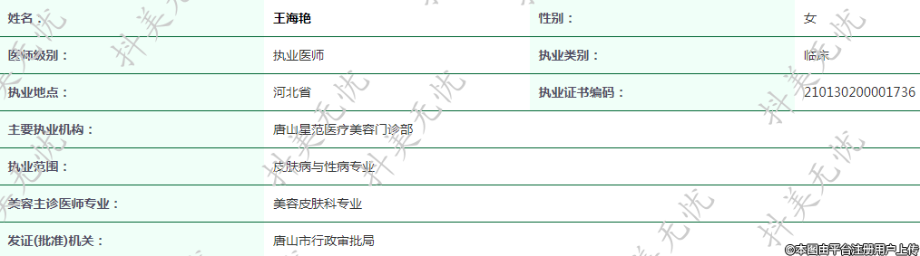 現(xiàn)任唐山星范皮膚美容醫(yī)生