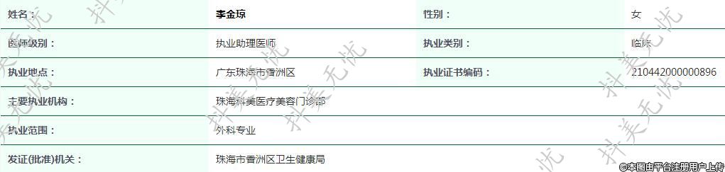 主要執(zhí)業(yè)機構:珠??泼泪t(yī)療美容門診部