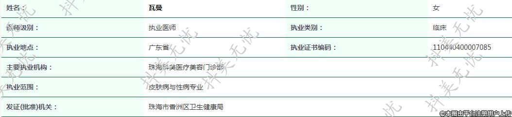 主要執(zhí)業(yè)機(jī)構(gòu):珠??泼泪t(yī)療美容門診部