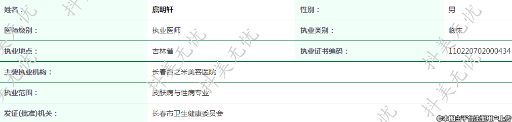現任長春西之米執(zhí)業(yè)醫(yī)師