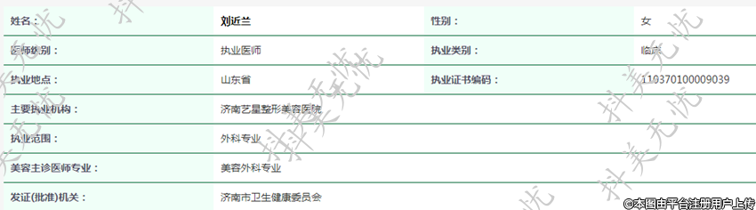主要執(zhí)業(yè)機(jī)構(gòu):濟(jì)南藝星整形美容醫(yī)院
