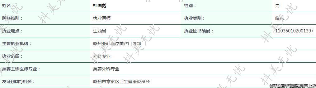 主要執(zhí)業(yè)機(jī)構(gòu):贛州亞韓醫(yī)療美容門診部