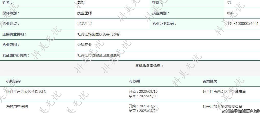 牡丹江雅施醫(yī)療美容執(zhí)業(yè)醫(yī)師