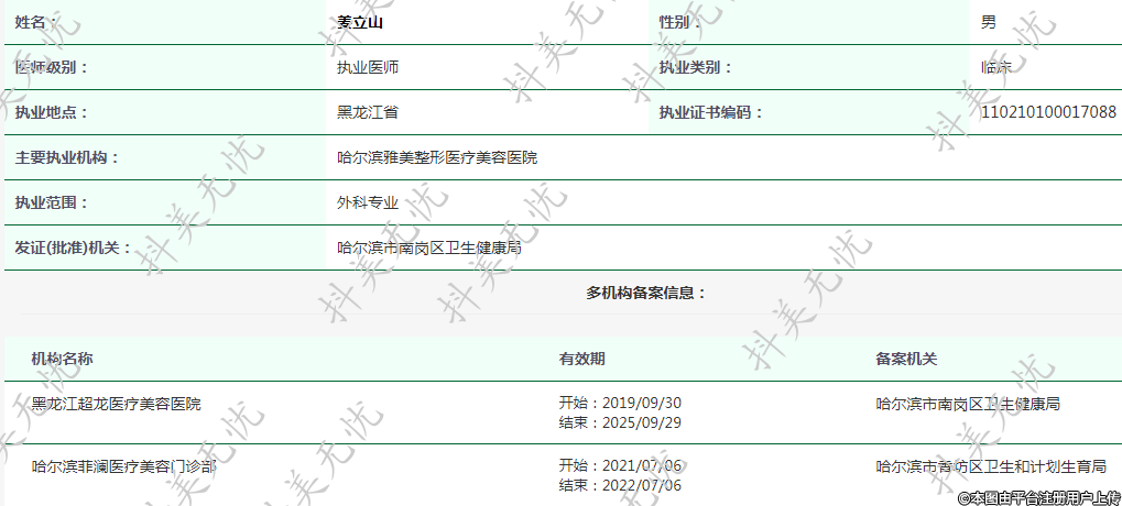 主要執(zhí)業(yè)機(jī)構(gòu):哈爾濱雅美整形醫(yī)療美容醫(yī)院