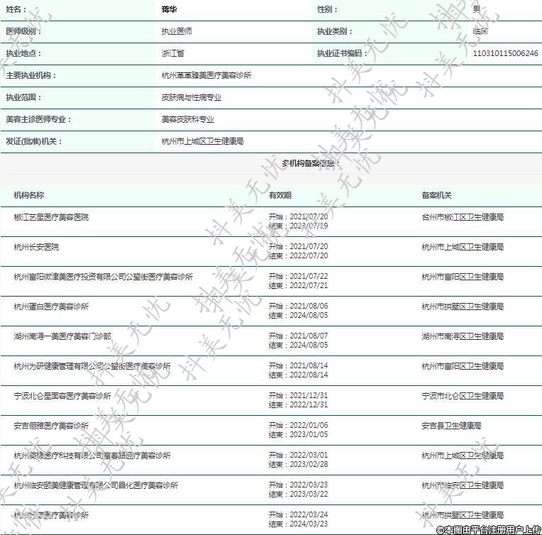主要執(zhí)業(yè)機(jī)構(gòu):杭州革革臻美醫(yī)療美容診所