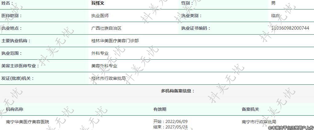 主要執(zhí)業(yè)機構(gòu):桂林華美醫(yī)療美容門診部