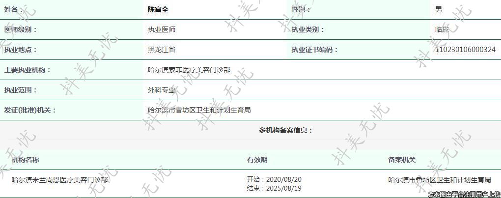 主要執(zhí)業(yè)機(jī)構(gòu):哈爾濱索菲醫(yī)療美容門診部