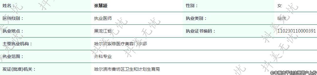 主要執(zhí)業(yè)機(jī)構(gòu):哈爾濱索菲醫(yī)療美容門診部