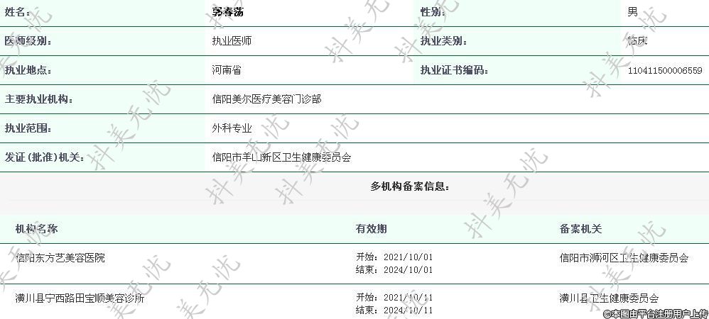 主要執(zhí)業(yè)機(jī)構(gòu):信陽(yáng)美爾醫(yī)療美容門(mén)診部