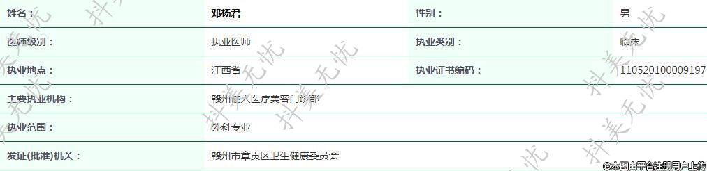 主要執(zhí)業(yè)機構(gòu):贛州儷人醫(yī)療美容門診部