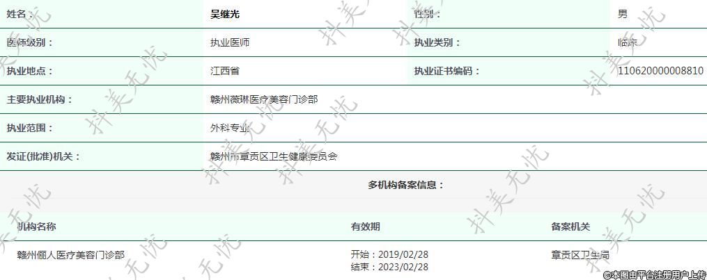 主要執(zhí)業(yè)機構:贛州薇琳醫(yī)療美容門診部