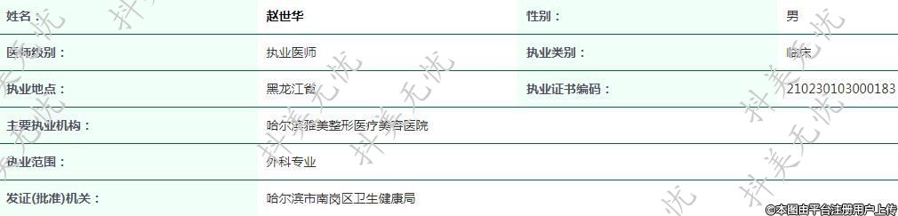 現(xiàn)任哈爾濱雅美整形外科醫(yī)生