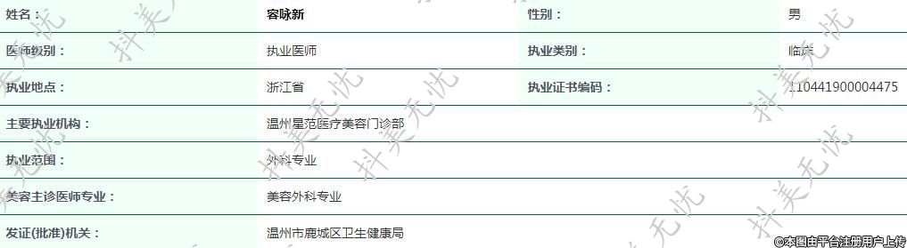 主要執(zhí)業(yè)機構:溫州星范醫(yī)療美容門診部