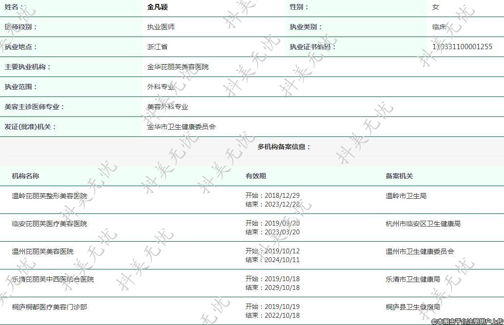 溫州芘麗芙醫(yī)療美容執(zhí)業(yè)醫(yī)師