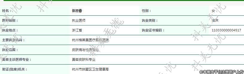 主要執(zhí)業(yè)機(jī)構(gòu):杭州格萊美醫(yī)療美容醫(yī)院