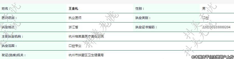 執(zhí)業(yè)范圍:口腔專(zhuān)業(yè)