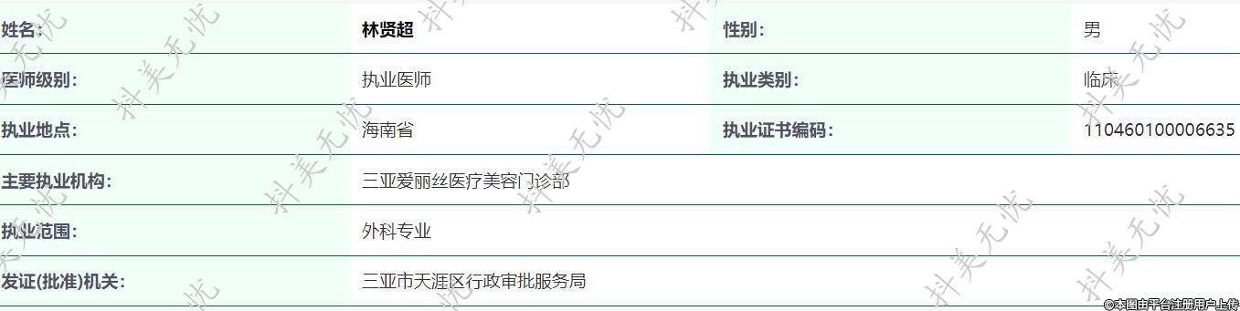 主要執(zhí)業(yè)機構(gòu):三亞愛麗絲醫(yī)療美容門診部