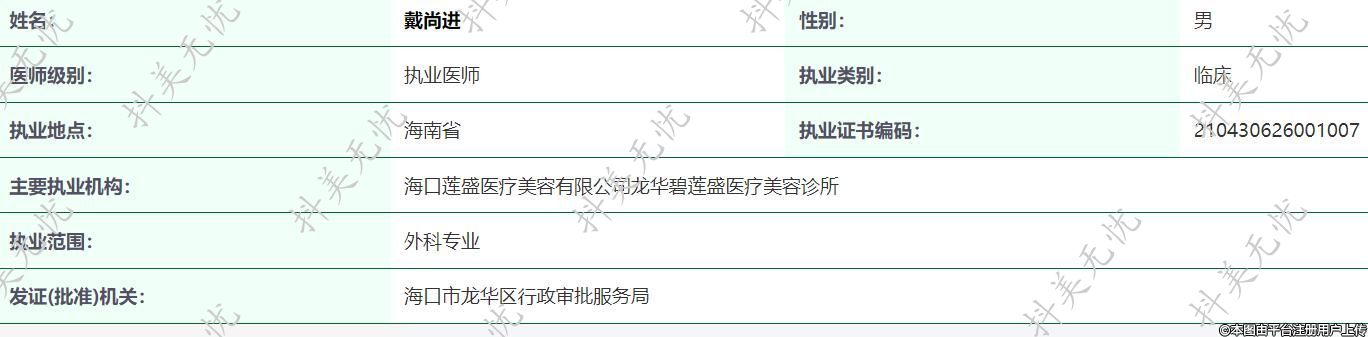 主要執(zhí)業(yè)機(jī)構(gòu):海口蓮盛醫(yī)療美容有限公司龍華碧蓮盛醫(yī)療美容診所