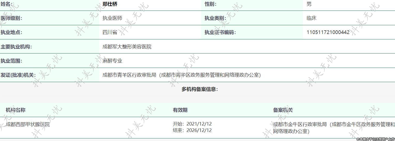 主要執(zhí)業(yè)機構:成都軍大整形美容醫(yī)院