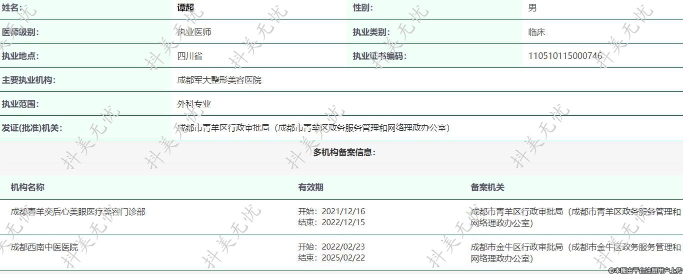 主要執(zhí)業(yè)機構(gòu):成都軍大整形美容醫(yī)院