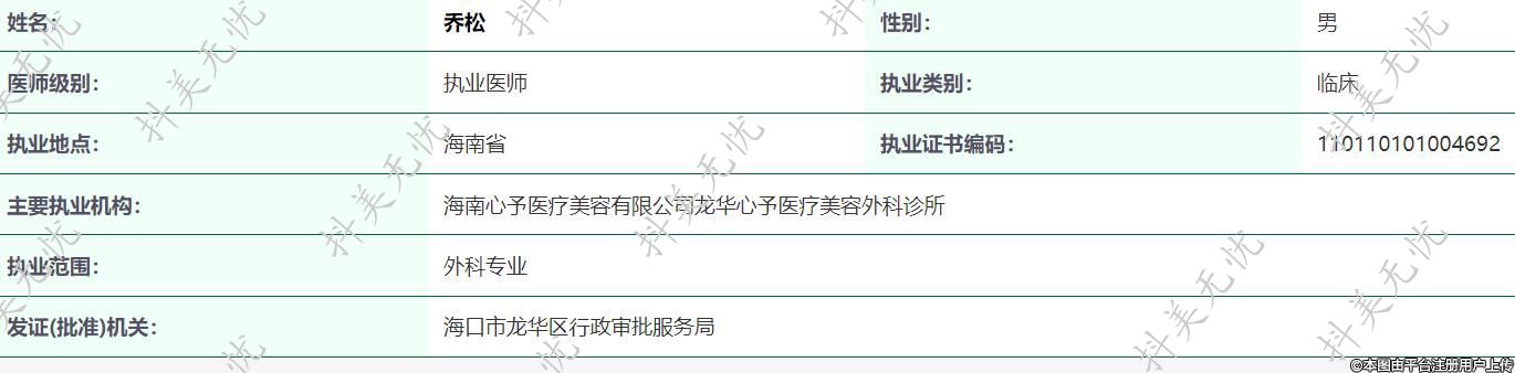 主要執(zhí)業(yè)機構(gòu):海南心予醫(yī)療美容有限公司龍華心予醫(yī)療美容外科診所