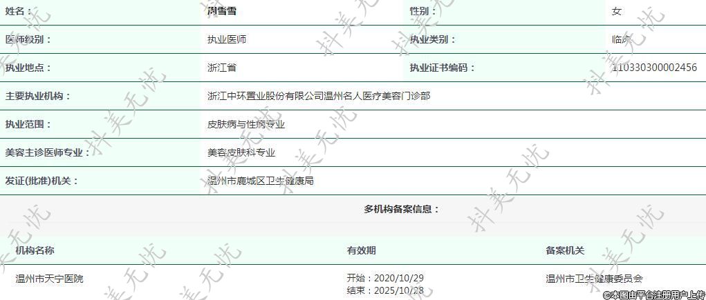 溫州名人醫(yī)療美容執(zhí)業(yè)醫(yī)師