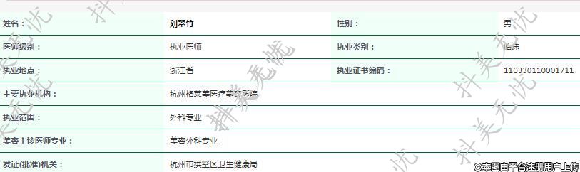 主要執(zhí)業(yè)機(jī)構(gòu):杭州格萊美醫(yī)療美容醫(yī)院