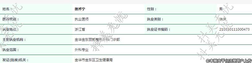 主要執(zhí)業(yè)機構:金華金東麗都整形外科門診部